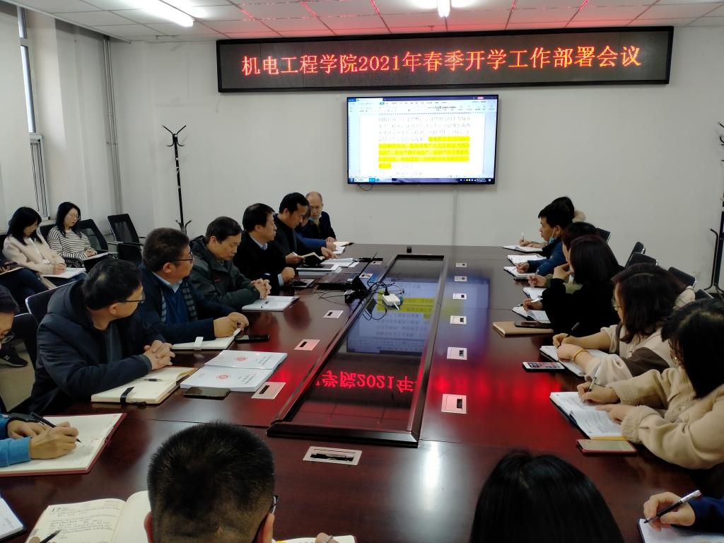 院长王志军对学院2021年重点工作进行了详细部署。第一,做好一流课程和一流专业建设;第二,“十四五”开局之年在科研上要加强协同合作,要注重项目申报;第三,师资队伍要抓住师德师风建设,时刻牢记为党育人,为国育才的初衷与使命;第四,时刻紧抓安全、疫情防控不松懈;第五,对教师关心的绩效改革、职称评审政策修订要在本学期完成;第六,在第五轮学科评估上要下功夫;第七,师生要熟悉机电学院发展历程,讲好机电故事,做好80年校庆工作。