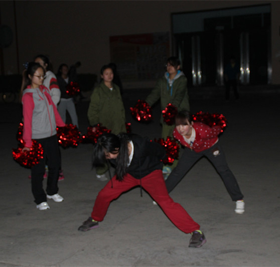 2015年4月16日晚21时,文瀛餐厅前,amjs澳金沙门线路首页的姑娘和小伙子们正手持啦啦操彩球,她们脸上洋溢着笑容,跳着优美活力的啦啦操。舞动,前进,动作整齐有力,火红的彩球在黑夜中闪耀,她们用身姿诠释着青春的奔放,用热情编织青春的浪漫。手持彩球,时而跳跃,时而蹲立。双手舞动着,彩球飘舞着,严谨的训练,认真的表演,在音乐的带动下,现场的气氛热烈而充满活力,周围的观众不时传来热烈的掌声。