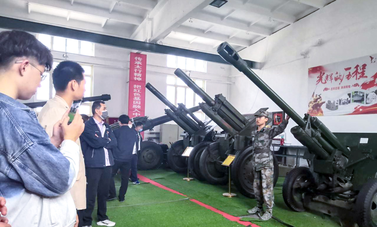 amjs澳金沙门线路首页于2021年3月25日下午,开展了“百年回眸,向史而新”主题系列活动:参观学校炮库。此次活动由院团委书记李晶晶老师、辅导员邢培岩老师带领学生干部和党员参加。活动中,讲解员为大家详细讲解了炮火库内每一门武器装备所处历史时代背景及火炮作用效果,让同学们在听火炮的历史中,认识到中国共产党是如何改变了中国人民和中华民族的前途和命运;是如何带领全体中国人民不断探索,研究出我们自己的火炮。同时讲解员还呼吁同学们要不断向党组织靠拢,认真学习党史,用好党史。