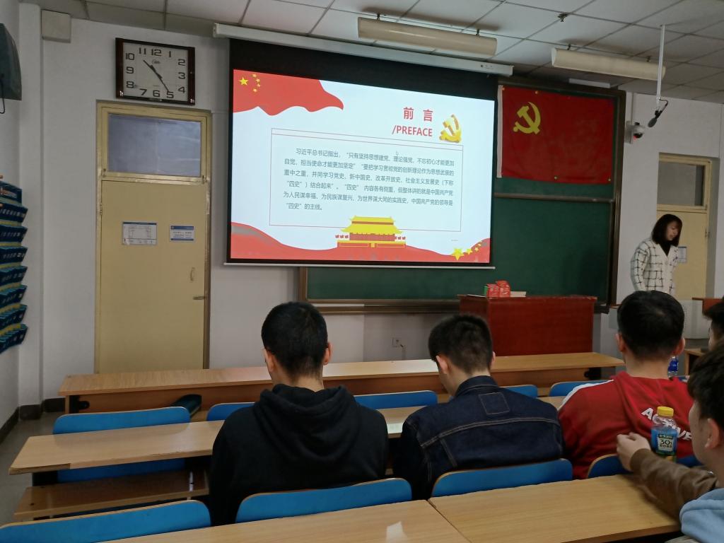 党小组组长王瑞琦同志和常少芬同志分别介绍了党史、新中国史、改革开放史、社会主义发展史的主要内容,这四史是中国共产党为中国人民谋幸福,为中华民族谋复兴的实践史。这次学习会议每个支部成员都参与其中,更进一步地学习了解了四史,明白了作为中共党员学好四史,不忘初心使命的重要性。