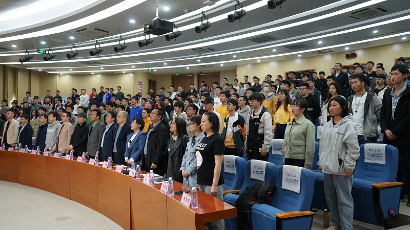 正式比赛前,全体起立,奏唱国歌。随后,大屏幕播放大赛宣传片,介绍了中北大学兵器装备设计大赛的历史荣誉和辉煌成就,激起参赛选手及全场嘉宾的热情。