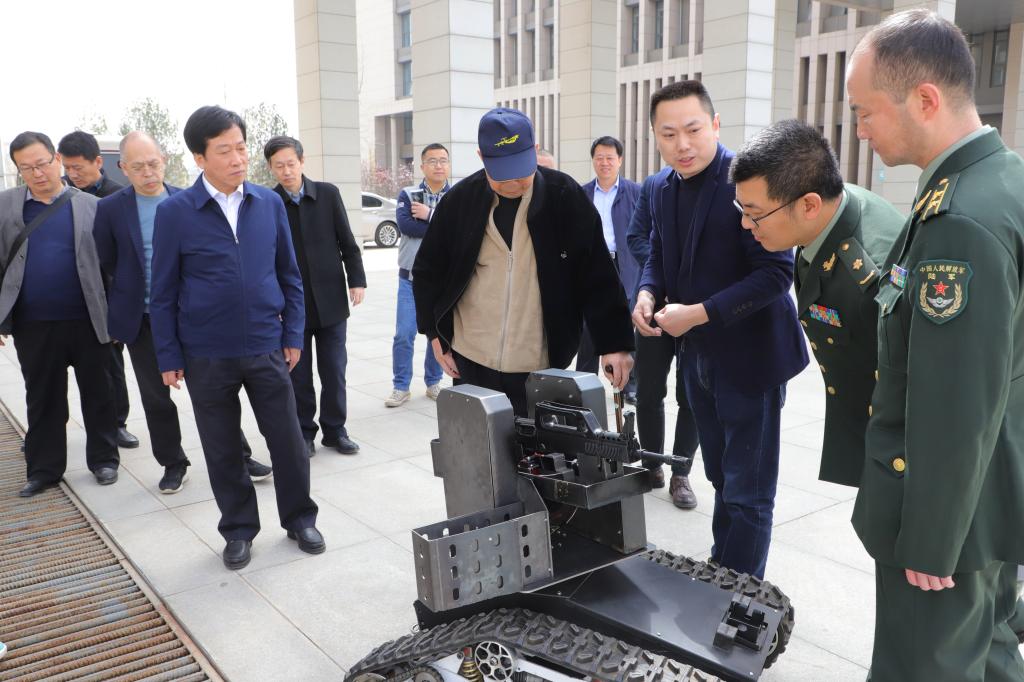 粟司令员一行参观了我院国家科普教育基地—火炮陈列室和自动武器陈列室,调研考察了我院建设的山西省兵器工程虚拟仿真实验教学中心,观看了我院师生开发的地面无人系统和空中无人系统演示,对学院提出了殷切希望。粟司令员指出,要以作战观点来、以实践观点来提出需求,要将先进性与实用性结合来开展科研。