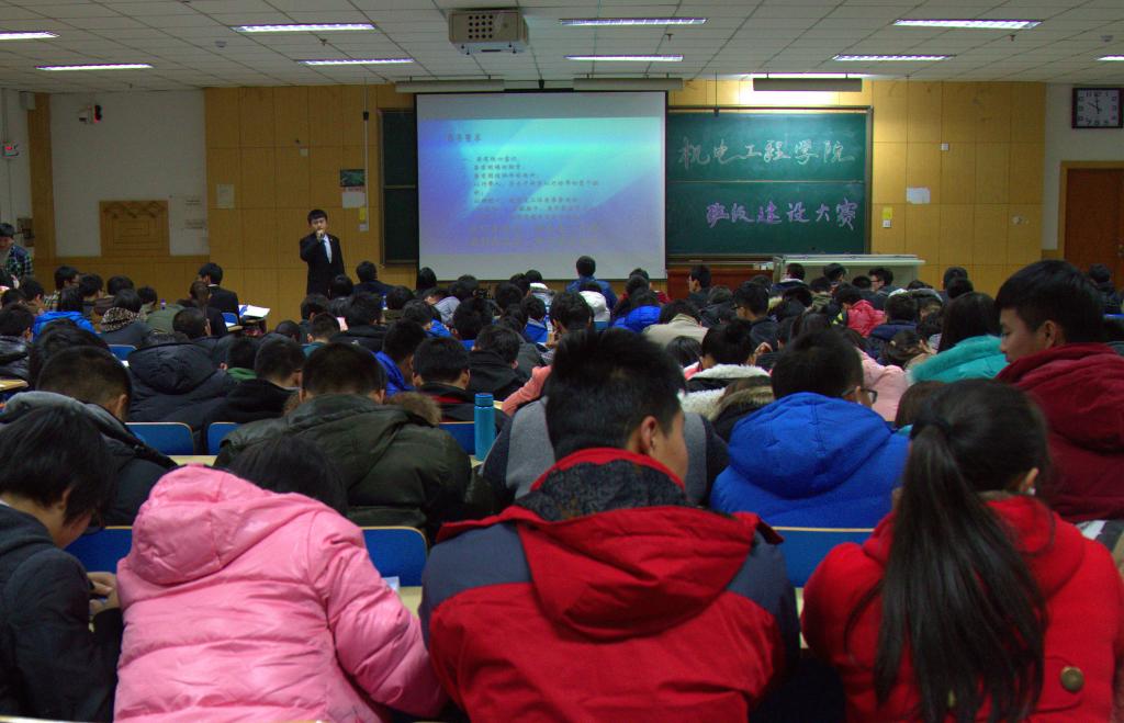 在观看班级建设设计大赛的视频后,张丽花老师为本次大赛致辞。她向大家讲解了为什么要举办班级建设设计大赛以及有何意义?并且,她对2014级新生在开学以来无论是学习还是参加活动的积极性表示非常满意。随后,共17位班长通过ppt和视频为大家展示了班级是如何建设的以及在班级建设中作为领导者有何经验和看法。中场休息时,进行了小提琴演奏和五小钱乐队的精彩表演和非常有趣的有奖问答环节。