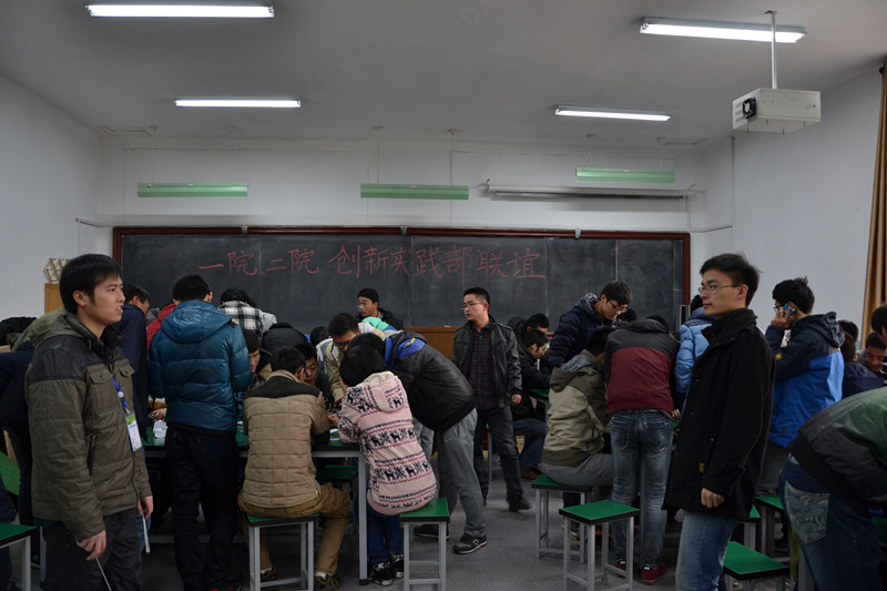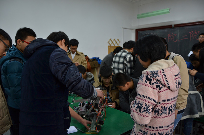 活动在两院科协成员的热烈掌声中开始,首先,我院科协创新实践部副部沈文祥代表我院科协向参加此次活动的来宾们表示最诚挚的欢迎,并具体说明了此次活动的相关流程与注意事项。接着,机械与动力工程学院科协创新实践部部长也发表了讲话,并再次强调了活动中的相关注意事项。之后,本次联谊活动正式开始。活动中,两院科协的同学们坐在一起,互相交流在科技创新上的想法,大家一起动手,进行机器人的拆装,制作,试验。会场洋溢着热烈的讨论气氛,大家热情的交流想法方法,科技思维在会场中摩擦,生出灵感的火花,让联谊活动几乎变成了一场喷涌着科技创新灵感的头脑风暴。最后,主持人宣布活动结束,但大家仍旧不想放下手里的工作,不想停住喷涌的灵感,在同学们不舍的叹息声和热烈的掌声中,此次联谊活动圆满结束。
