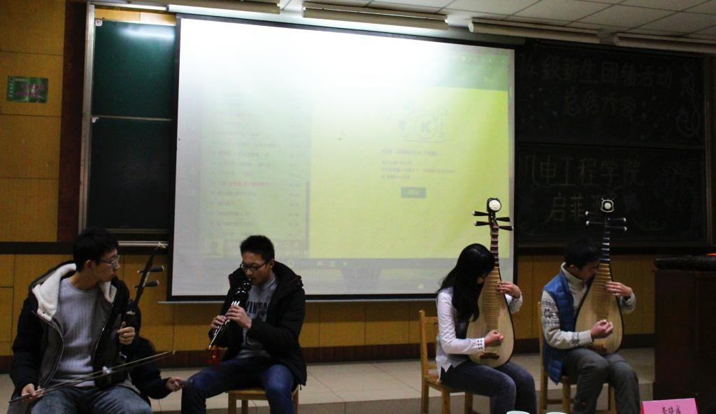 2014级各班心理联络员通过ppt为全体在场人员展示了班级团辅活动的开展情况以及活动的成果和自己的心理感受。中场环节,我们也有幸请到了我校民乐队的成员们为大家带来了精彩的表演。