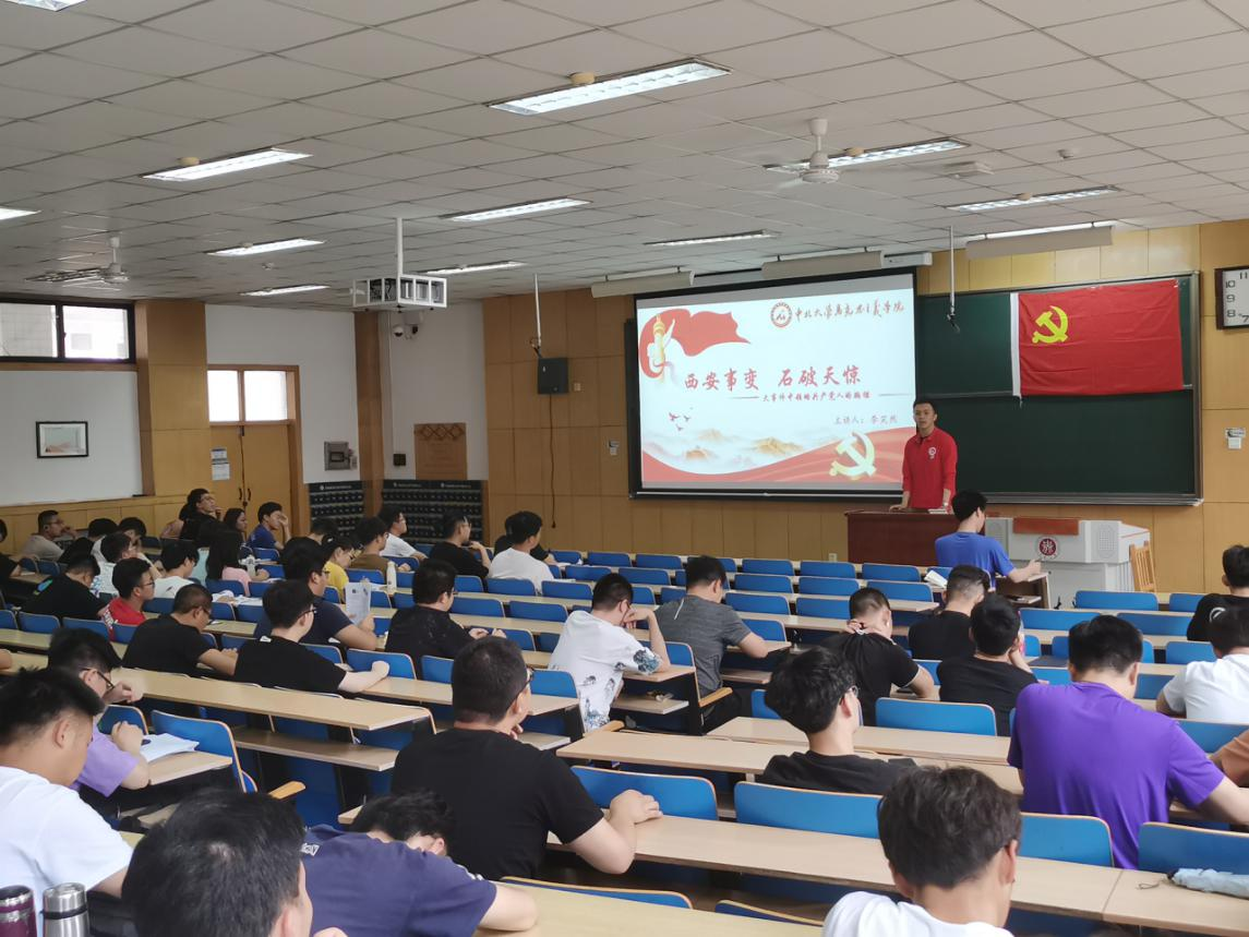 为庆祝建党100周年,增强广大青年学生的历史使命感,继承和发扬党的光荣传统和优良作风,amjs澳金沙门线路首页研究生党支部邀请马克思主义学院党史宣讲团进行党史宣讲。宣讲于2021年6月24日16:00在11309H召开,主题为“学党史、守初心、喜迎建党百年”。大会由2020级研究生党支部副书记靳凯毅同志主持,参加本次大会的有全体研究生党员、入党积极分子及发展对象。