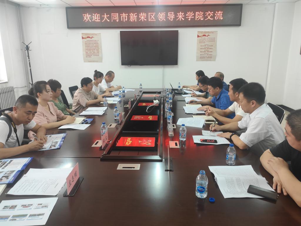 7月15日,在大同市新荣区委常委、副区长刘玉巍带领下,新荣区教育局副局长、职业技术学校校长刘建英等一行7人到学院开展交流活动,学院领导罗建国、刘光、李世中和航空航天工程系关世玺主任、原梅妮副主任等相关教师参加了座谈会。
