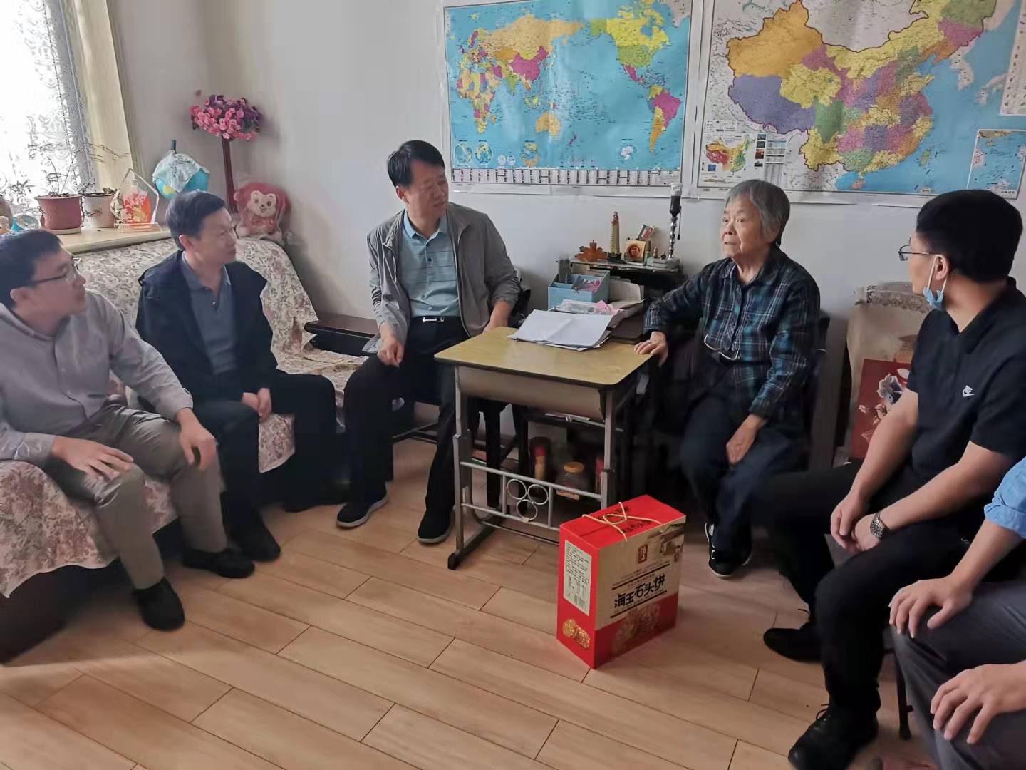 金秋十月,秋高气爽,在一年一度的教师节来临之际,amjs澳金沙门线路首页党委书记罗建国、院长王志军、党委副书记刘光、副院长李世中、工会主席崔俊杰、教师代表韩晶、曹广群等一行于2021年9月9日上午,来到我院已退休老教授王靖君、张婉如、段维民等家中看望慰问,为他们送去关怀和温暖,送上节日祝福。