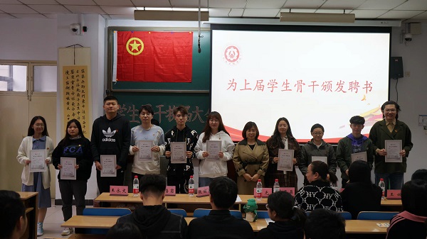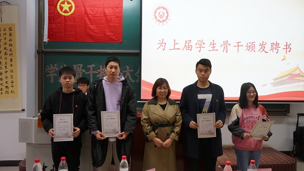 首先,由张丽花老师为上一届学生骨干代表颁发聘书,并由李晶晶老师宣读下一届学生骨干任命文件。