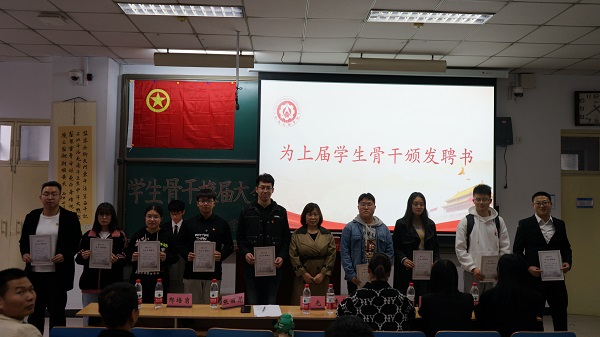 然后,新一届学生骨干代表王华伟发言,在感谢了上一届学生干部兢兢业业的工作后,表示一定会接过重担,发挥好桥梁、纽带、榜样的作用,将学院的优良传统发扬下去。