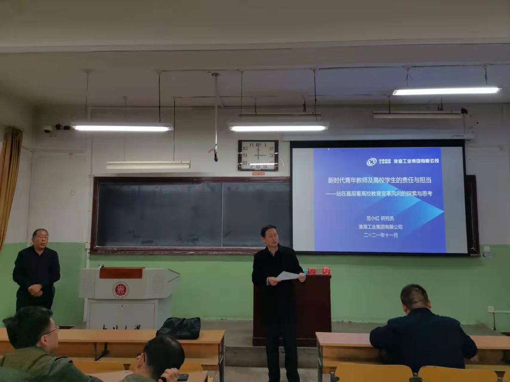 为加强我院青年教师和研究生的思想政治教育,11月4日15:00在01102H教室,淮海工业集团有限公司董事会职工董事、正高级工程师范小红于为我院师生带来了题为“新时代青年教师及高校学生的责任与担当”的学术讲座,院长王志军教授、副院长赵河明教授、部分青年教师以及研究生100余人参加了此次讲座。