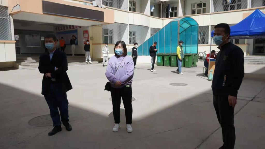 三月以来,国内疫情呈现点多、面广、频发的特点。疫情就是命令,防控就是责任。自开学以来学院采用线上线下同步教学、同步办公,4月5日以来,学院每天安排四名辅导员老师在学生宿舍楼内值班,院党委副书记刘光、辅导员王永文、邢培岩入住学生寝室,24小时待命,院学生科长张丽花每天的日常工作就是来值班室了解学生信息动态。