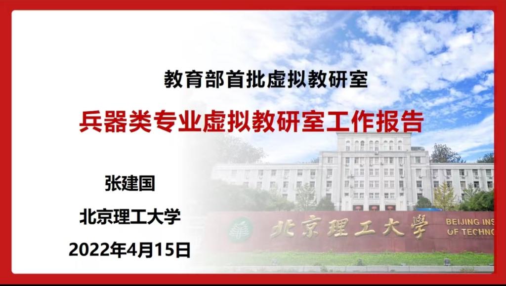 2022 年 4 月 15 日,兵器类专业虚拟教研室成立启动会暨第一次工作会以线上线下结合的方式成功召开。本次会议由北京理工大学机电学院主办,参与申报兵器类专业虚拟教研室的南京理工大学、中北大学、沈阳理工大学、长春理工大学、西安工业大学、安徽理工大学、西南科技大学、空军工程大学 8 所高校的相关领导、出版社及相关企业领导、专业虚拟教研室成员近 60 人线上线下参加会议。我院王志军、李世中、曹红松、张树霞等老师参加了线上会议,李世中副院长代表学院就虚拟教研室建设工作进行了发言。