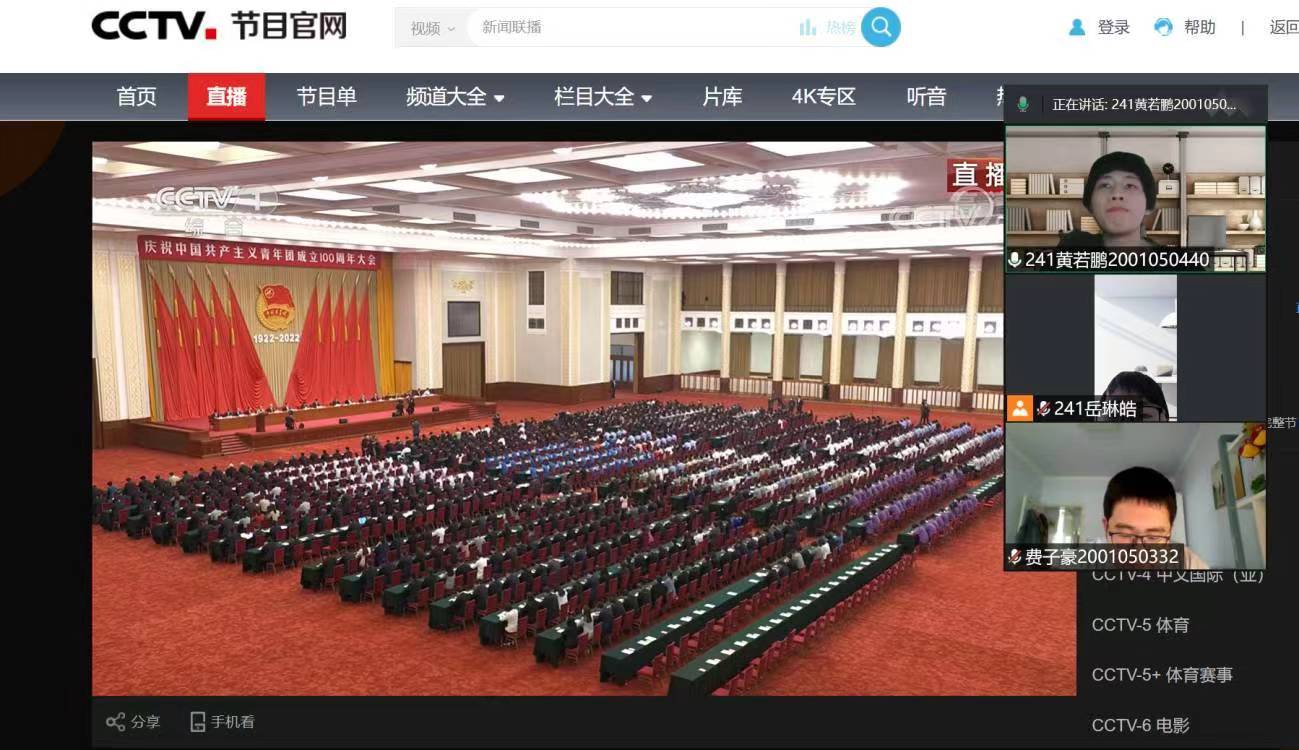 amjs澳金沙门线路首页组织师生积极收看庆祝共青团成立100周年大会