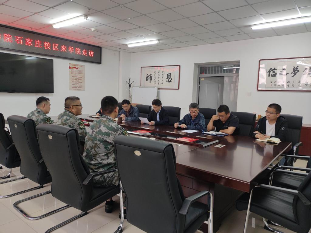5月23日,陆军步兵学院石家庄校区田主任一行4人来我院调研,王志军院长、李世中副院长和高跃飞、崔俊杰、肖有才等相关教师参加了座谈会。