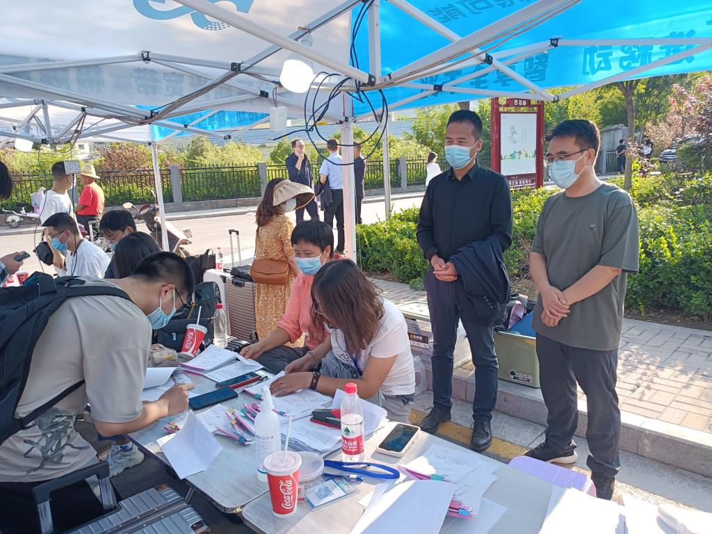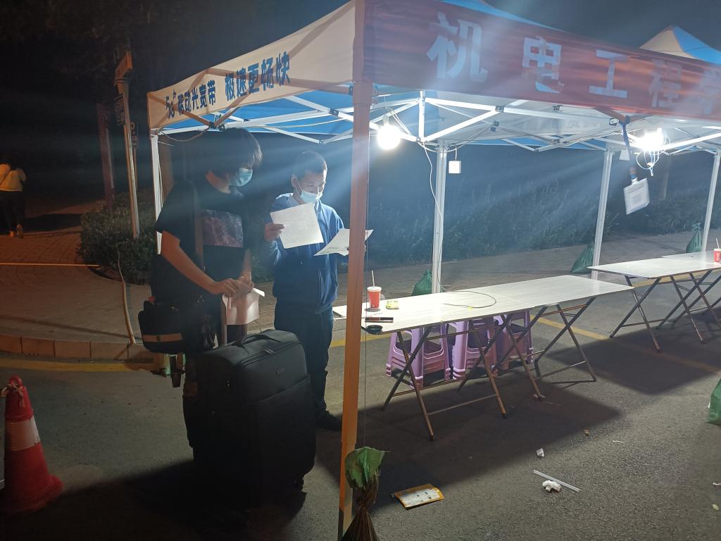 学院在校门口设立了“便捷通道”,在辅导员老师的引导下,学生依次经过测温、验码、核酸、领取进校单等环节后有序进入校园。早上6点多,随着返校学生进入校园,校园顿时热闹起来。为了接待到晚上最后一名学生返校,辅导员邢培岩老师、王永文老师到晚上23点多才离开工作接待点。