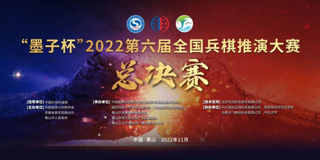 2022年11月23日-25日,由中国科学技术协会指导,中国指挥与控制学会、安徽省黄山市人民政府等单位主办,中北大学、陆军炮兵防空兵学院等单位协办的“墨子杯”2022第六届全国兵棋推演大赛总决赛在安徽省黄山市成功举办。