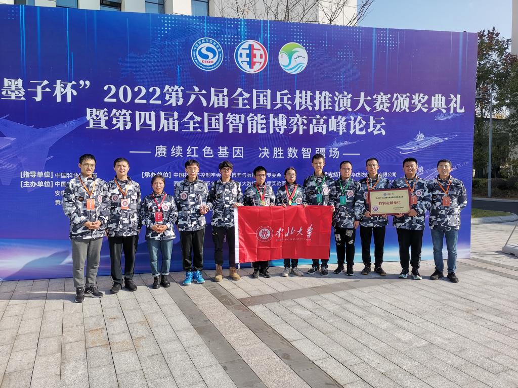 来自全国十余所军地高校、39支队伍进行了巅峰对决。经过激烈角逐,我校由学院学生石津权、陈一波两位同学组成的代表队不负众望摘得桂冠,陆军炮兵防空兵学院谢龙、冯秀浪组成的代表队获得亚军。这是我校在全国兵棋推演大赛中连续六年夺冠,充分体现了学校国防教育成效,以及作为“人民兵工第一校”的示范引领作用,彰显出学校在创新教育、人才培养方面的国防底蕴。同时,我校荣获大赛“特别贡献单位”和“优秀组织奖”。