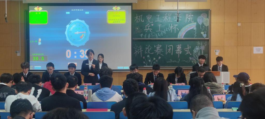 为进一步提高我院学生的语言表达与逻辑思维能力,丰富学生的课余生活,amjs澳金沙门线路首页于2023年3月19日下午在11109教室举办了第十七届“兵工杯”辩论赛,在抖音号(勤学日新机电人)进行了全程直播。辅导员老师邢培岩对辩论赛进行指导。
