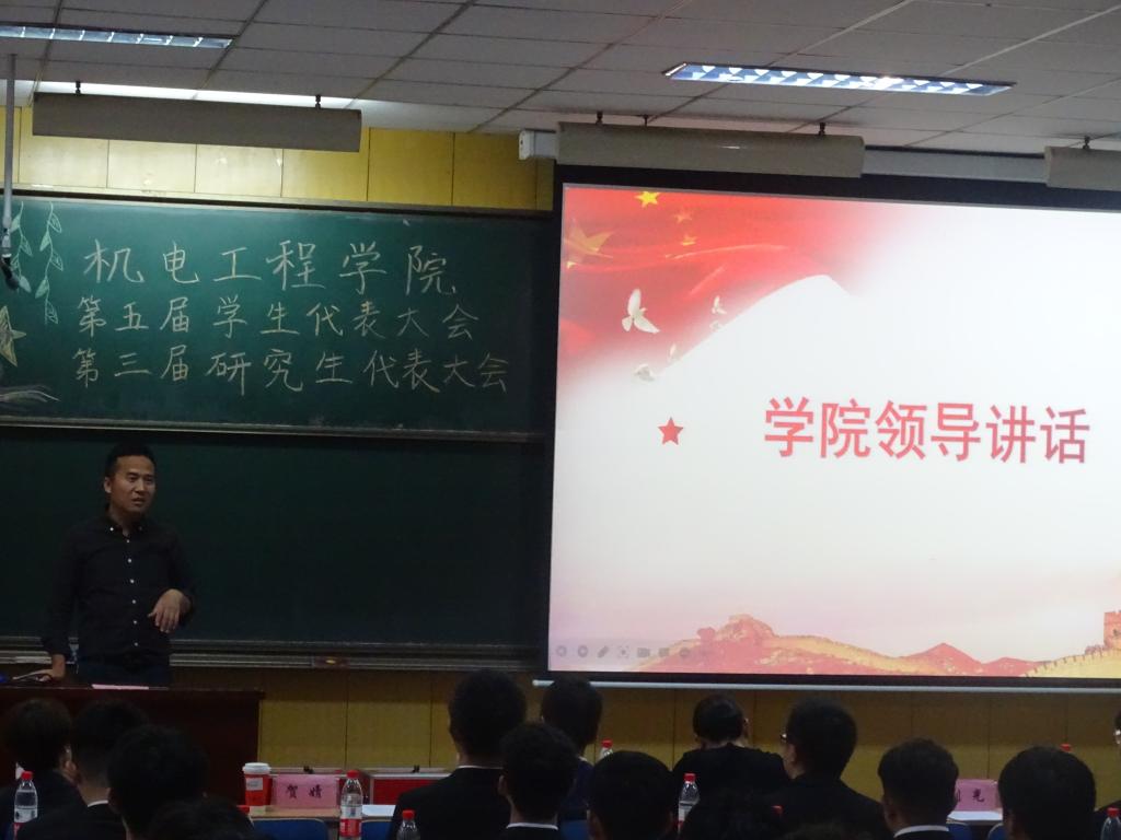 大会在庄严的国歌声中拉开了序幕。院党委副书记刘光老师致辞,他在新的学期伊始,告诉学生代表们:一要强化思想引领;二要新旧传承;三要弘扬军工文化。他激励同学们,机电是中北军工文化的根基,一定要秉承军工精神。
