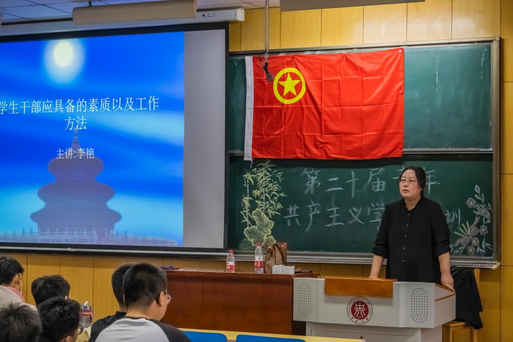 崔媛老师开始了青共校培训的开班第一讲,题为“如何做坚定的青年马克思主义者”,增加了同学们对马克思主义发展史的了解。王彩萍老师带来题为“科技创新点亮青春,红色青春铸就梦想”第二讲,她为同学们详细讲解了各类科技创新竞赛,并希望同学们积极参与科创类比赛,提高自己的科技创新的能力。第三讲由孙碧野学姐从自身经历出发,讲何为“学生骨干的初心和使命”,结合实际工作经验,使学生骨干更好地领悟到作为学生骨干的初心和使命,以及如何坚守初心和使命。第四讲活动,王佳学长带领学生骨干进行分组讨论,与学生骨干一起讨论“如何做到爱国爱校荣院”,大家积极讨论,抒发自己的见解。第五讲为李艳老师带来的题为“学生干部应具备的素质以及工作方法”的讲座。