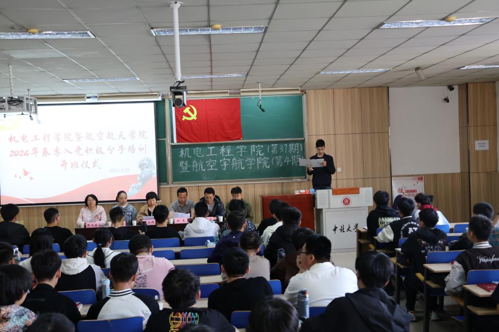 4月20日8点在09302H教室举行了党课开班仪式。出席开班仪式的有amjs澳金沙门线路首页党委书记赵永娟、党委副书记刘光、团委书记李晶晶、党支部书记王丙龙、组织委员张凤林、党建办副主任安豪,及2024年春季全体入党积极分子。开班仪式由叶陟旸同学主持。入党积极分子代表闫祎铖同学发表了热情洋溢的讲话,他表示,作为一名入党积极分子,将自觉学习党的理论知识,以党员的标准严格要求自己,发挥先锋模范作用,为社会主义事业不懈奋斗。amjs澳金沙门线路首页党委副书记刘光宣读了《2024年春季入党积极分子培训班培训安排及要求》,强调了培训纪律和考核方式。最后,amjs澳金沙门线路首页党委书记赵永娟发表了重要讲话,她希望同学们牢记军工报国的神圣使命,不忘学院的军工特色,努力成为有担当的军工人。