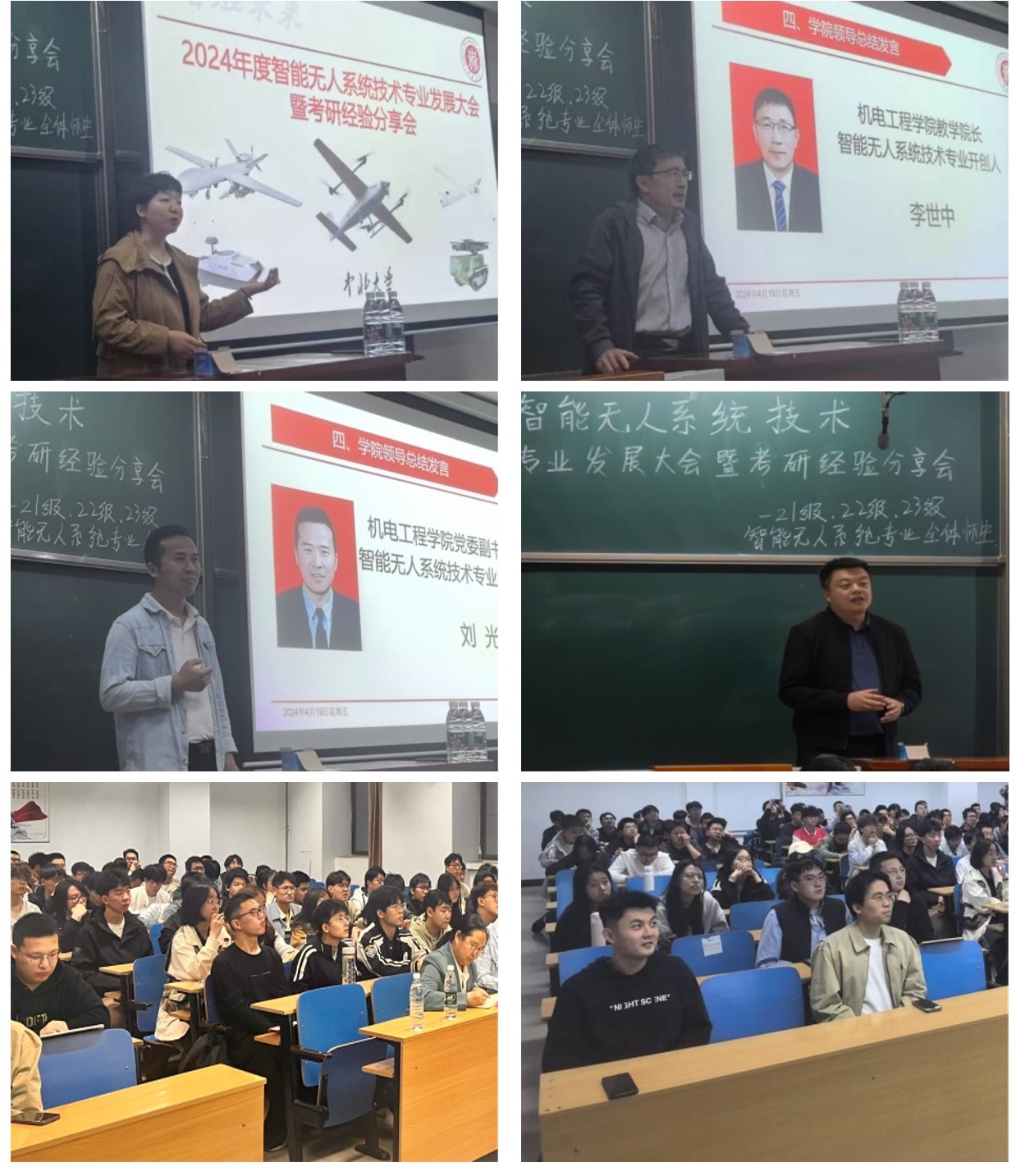 4月19日晚7点,“2024年度智能无人系统技术专业发展大会暨考研经验分享会”在11105H教室举行。会议由智能无人系统技术专业负责人沈剑副教授主持。amjs澳金沙门线路首页党委书记赵永娟、学院党委副书记兼副院长刘光、学院教学院长李世中出席大会并讲话。智能无人系统技术专业全体教师、班主任及2021、2022、2023级全体学生参加了会议,共商专业未来发展。