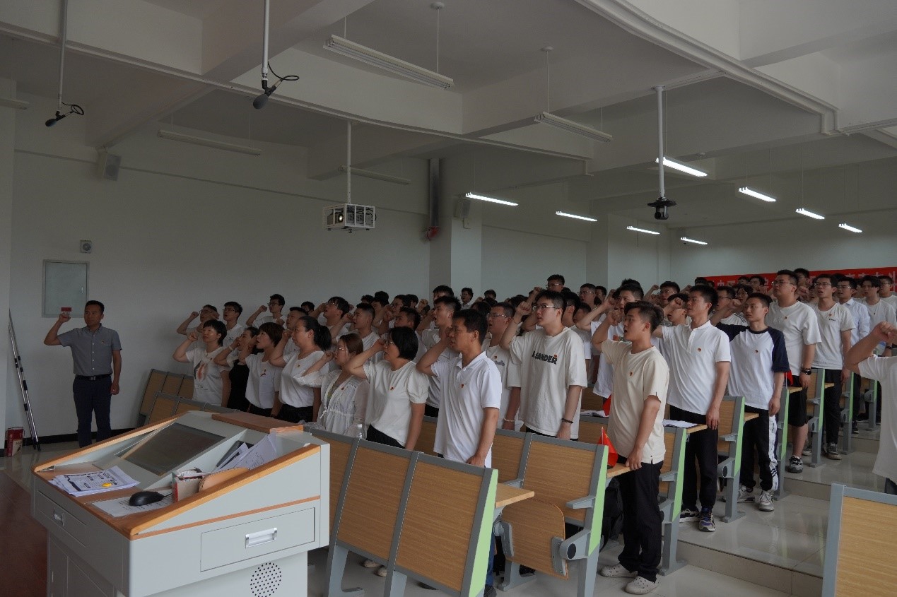 学院党委副书记刘光带领毕业生党员重温入党誓词,回顾入党宣誓时的庄严承诺和坚定决心,在铮铮誓言中牢记作为一名共产党员的使命担当。