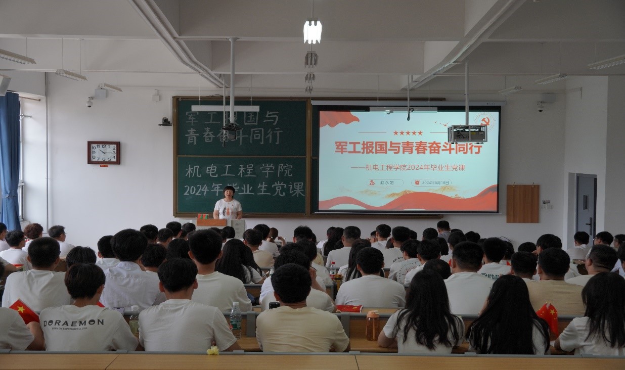 党课伊始,赵永娟书记以“军工报国与青春奋斗同行”为主题,从三个方面进行了讲述,一是从牢记军工精神,在奋斗中实现青春梦想;二是学习军工楷模,在军工精神指引下前行;三是学好本领技能,让军工报国和青春同行。同时,赵书记勉励毕业生党员永葆政治本色,始终以党员的标准严格要求自己,坚守党员的先锋模范作用,始终保持对党的忠诚和对人民的热爱,将个人理想与国家发展紧密结合起来,以实际行动践行社会主义核心价值观。