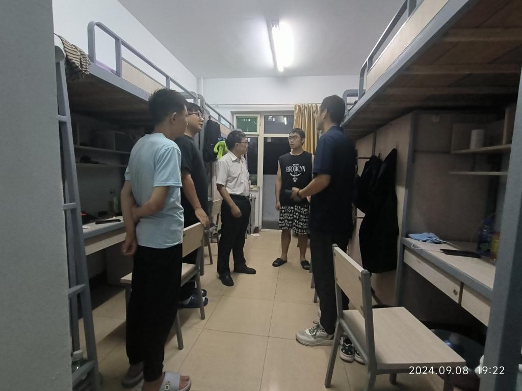 2024年9月8日amjs澳金沙门线路首页2024级迎新工作在紧张有序的工作氛围中顺利完成。下午7时,院党委书记赵永娟、院党委副书记刘光、副院长李世中分别带领2024级新生班主任深入新生宿舍走访慰问,与学生面对面交流,了解学生需求,送上真诚的关怀与暖心的问候。