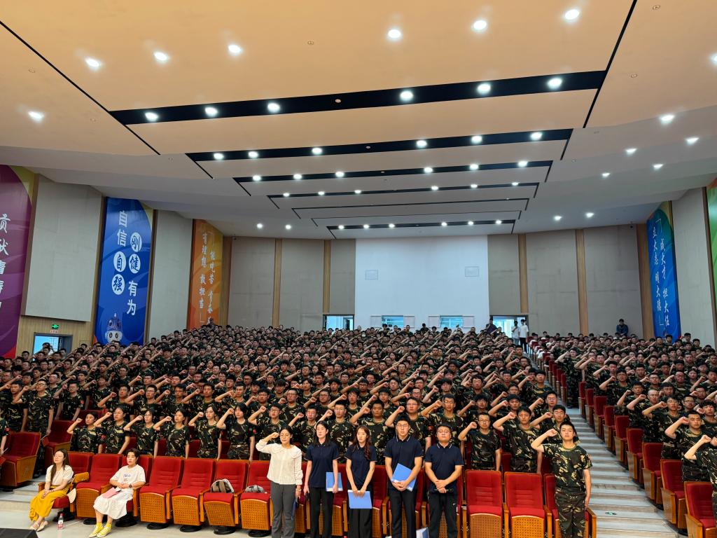 随后,院党委书记赵永娟致辞。她首先对新生们表示热烈的欢迎和衷心的祝贺,随后提出三点希望与新生共勉:一是要有家国情怀,做一个奉献祖国的青年。她强调,作为amjs澳金沙门线路首页的军工学子,同学们应该拥有家国情怀,怀揣军工梦想,为国防的强大,为祖国的前途命运贡献力量。二是要有恒心毅力,做一个有真才实学的青年。希望同学们拿出考大学的恒心毅力,主动学习,具有创新精神,勇于探索,具备抗挫折能力,提升自己进入社会的各项技能,立志做有理想、敢担当、 能吃苦、肯奋斗的新时代青年。三是要爱我机电,做一个懂得感恩的青年。要时时刻刻记住自己是机电人,是一名光荣的军工人。