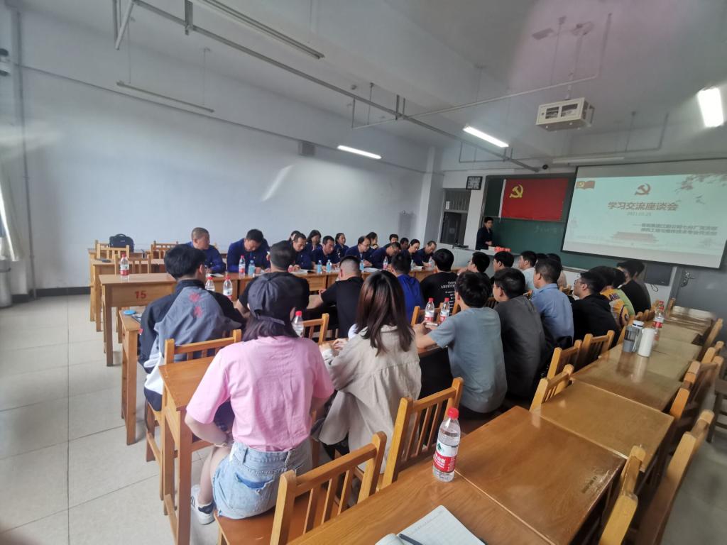 2021年5月25日下午,晋西集团江阳公司七分厂党支部部分党员来到中北大学,在15404H教室与弹药工程与爆炸技术专业党支部开展学习交流座谈会。