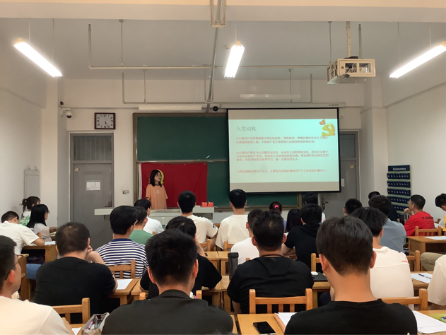 会议开始,通过观看视频,一起学习了《用好红色资源,传承好红色基因,把红色江山世世代代传下去》重要文章。随后开始答辩会,此次答辩会主要以问答的形式进行。首先由发展对象上台自我介绍,接着由党支部书记、党支部成员进行提问,发展对象回答问题并对客观问题发表个人观点,最后由支部成员为答辩人表现进行评分。答辩主要围绕入党动机、学习成绩、对学院及班级的贡献、党性修养等问题进行,旨在考察发展对象对党的认知程度以及在党员发展过程中对党的政策的了解与个人实践情况。答辩过程中,各发展对象从容冷静、思维清晰、对答如流,在个人见解的阐述中不仅展现出大学生的朝气与活力,还传达出作为发展对象所具备的奉献精神,体现出良好的党性修养与较高的思想觉悟。同时,党支部书记也向发展对象们表达殷切期盼。
