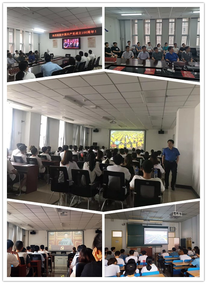 2021年7月1日上午8时,庆祝中国共产党成立100周年大会在北京天安门广场隆重举行。amjs澳金沙门线路首页党委组织教工党员在313会议室、研究生支部在312会议室、本科学生各支部党员在812会议室、主楼11307H集中观看大会直播,庆祝党的百年华诞。