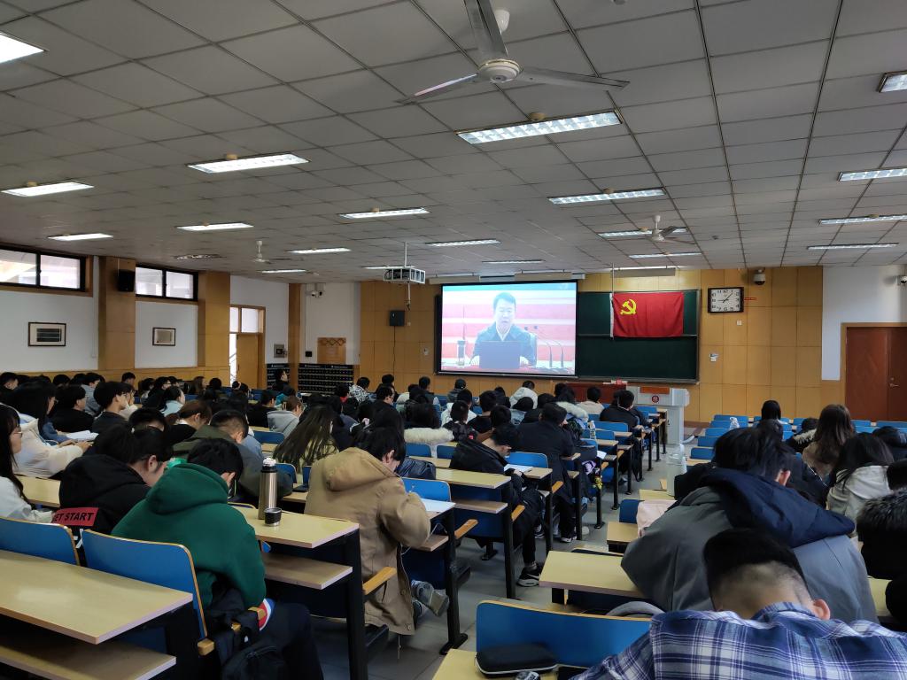 2021年11月13日上午9时,amjs澳金沙门线路首页党建办公室组织各支部全体党员和入党积极分子在11309H、11311H和11505H三个教室观看学习中北大学党委书记沈兴全书记主讲的“第一堂党课”讲座直播。