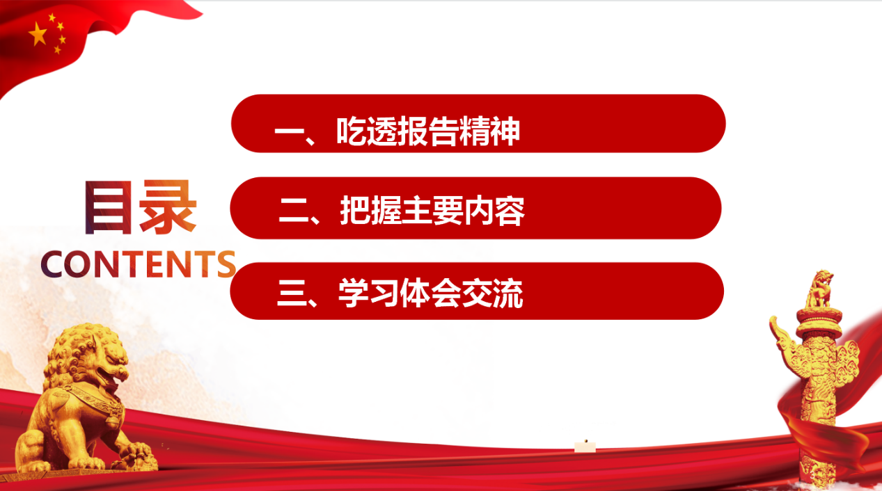 罗建国主题宣讲分为吃透报告精神、把握主要内容、学习体会交流三个部分。在吃透报告精神部分,他首先介绍了党的二十大的主题,向党内外、国内外鲜明宣示,中国共产党和中国人民在新征程上举什么旗、走什么路、以什么样的精神状态、朝着什么样的目标继续前进。这是党的二十大的灵魂,是党和国家事业发展的总纲。接着分析了党的二十大的主题与党的十八大、十九大的主题的区别与传承,分别从“旗帜和思想”“基因和血脉”“精神状态”“奋斗目标”“团结奋斗”“三个务必”六个方面阐述了党的二十大主题。在把握主要内容部分,他主要从深刻领会大会主题和丰硕成果、过去5年的工作和新时代10年的伟大变革、马克思主义中国化时代化、关于中国式现代化、全面建设社会主义现代化建设的目标任务、坚持党的全面领导和全面从严治党、应对风险挑战等七方面的内容进行了讲解。特别针对全面落实科教兴国战略、强化现代化建设人才支撑发挥作用方面,结合学院特色发展,对学院师生提出了要求。在学习体会交流时,他提出带着感情学、带着压力学、带着自信学、提高站位学。