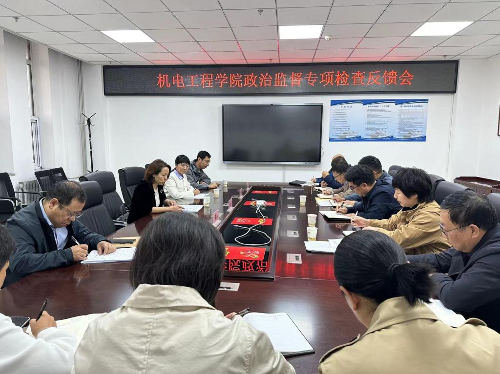 2023年10月8日,学校政治监督专项检查第二监督检查组莅临amjs澳金沙门线路首页召开政治监督专项检查情况反馈会。检查组组长张清及成员杜苇、蔡文涛、贾万利出席会议,学院全体领导班子成员、各科室负责人参加了会议。