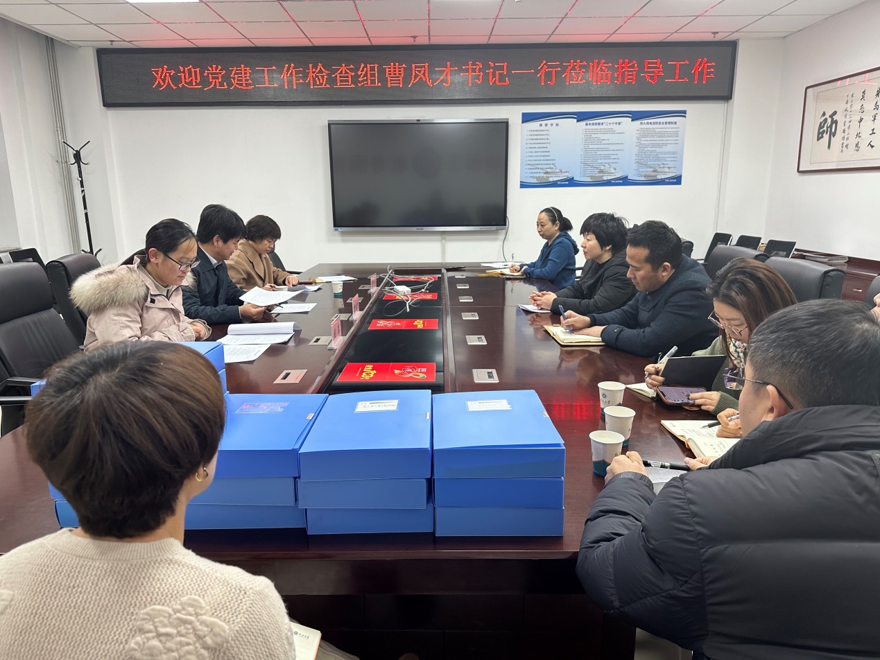 2024年1月19日,学校党建工作检查组第一组莅临amjs澳金沙门线路首页对学院党建工作进行检查,检查组组长曹凤才及成员杜瑞平、刘姿出席会议,学院党委书记赵永娟、副书记刘光及各党支部书记参加了会议。