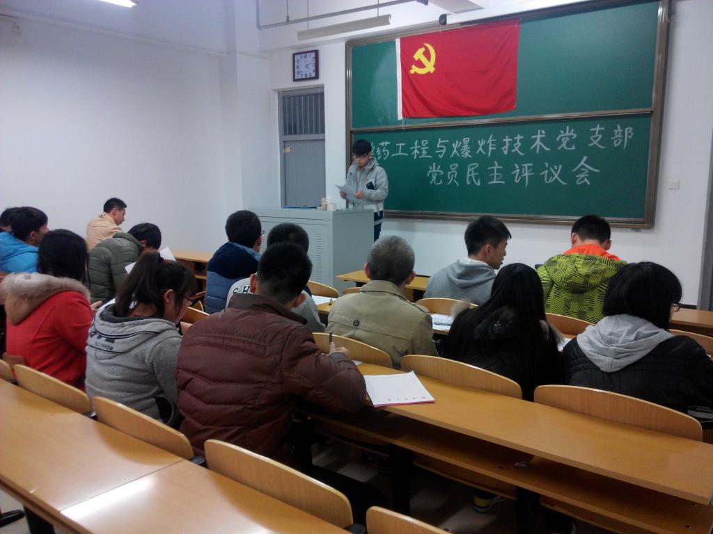为了积极响应省委宣传部和高校工委组织部《关于做好2014年度基层党建“联述联评联考”工作的通知》,有效执行校党委下发的关于“要求各院召开专项述职会议”的通知,amjs澳金沙门线路首页第四学生党支部于2014年11月11日下午四点在逸夫楼15108召开弹药工程与爆炸技术党支部党员民主评议会。本次会议由支部书记刘帅同志主持,amjs澳金沙门线路首页党委办公室主任支晋豫、组织部部长刘润涛出席了本次会议,共有24名党员、预备党员进行了大会述职。