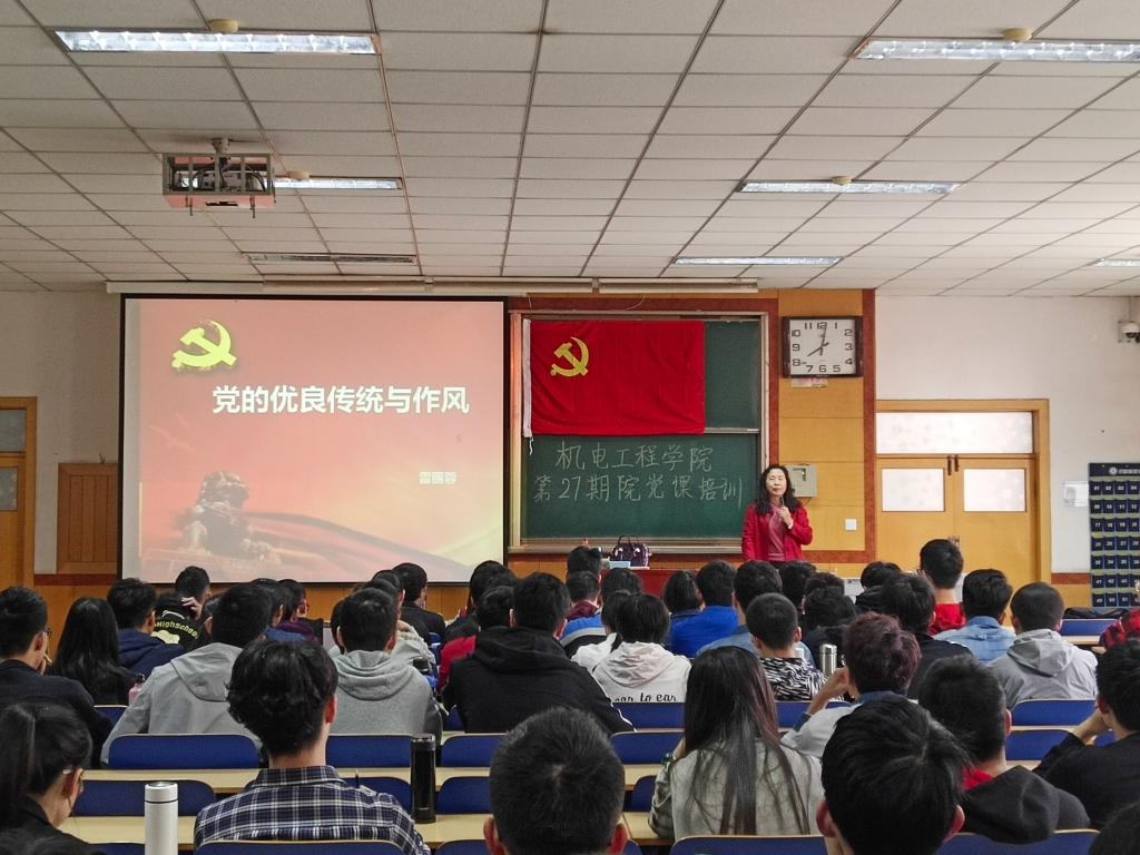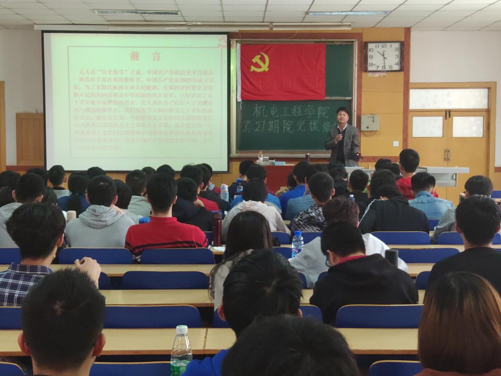 2019年4月21日上午,amjs澳金沙门线路首页第27期党课第四讲和第五讲于09203H教室举行,amjs澳金沙门线路首页第27期全体入党积极分子参加了此次培训。