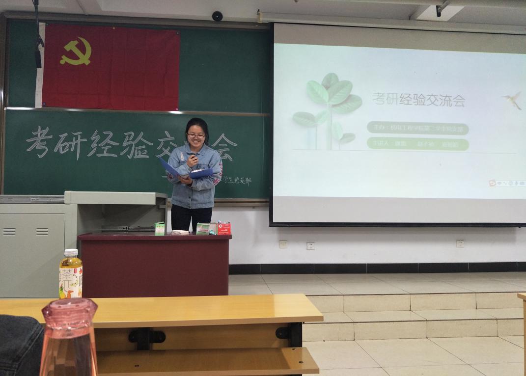 交流会上,考入中南大学的庙志超同志从校园风景、考研心态、生活日常作息等方面向大家分享了自己的考研经验,他希望大家在准备考研的过程中注重心态的调节,只有心态好才能效率高。考入南京航空航天大学的赵子祯同学向大家分享了南京航空航天大学初试、复试的主要内容及注意事项,和考研过程中可能遇到的困难及克服办法。考入西北工业大学的赵雷同学针对于有意向报考西北工业大学的同学分享了自己考研期间的时间分配以及各阶段安排,他告诫大家无需追求长时间学习,而是要找到适合自己的作息规律,高效学习。