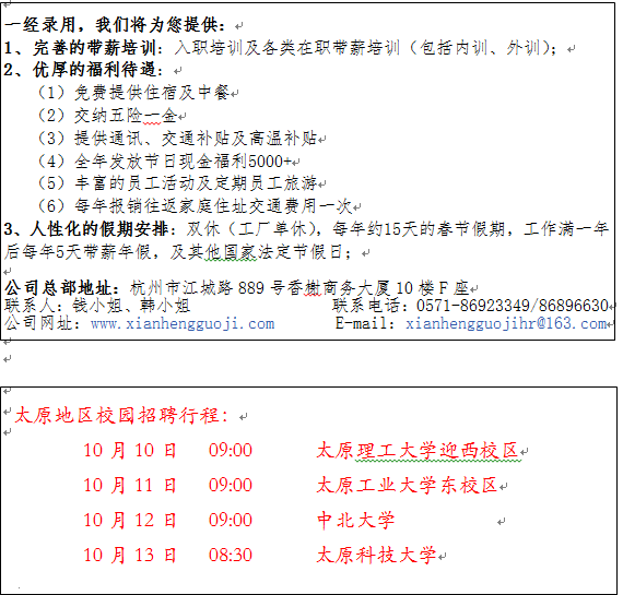 工作地点:杭州、绍兴、温州 待遇:第一年4-4.5万/年