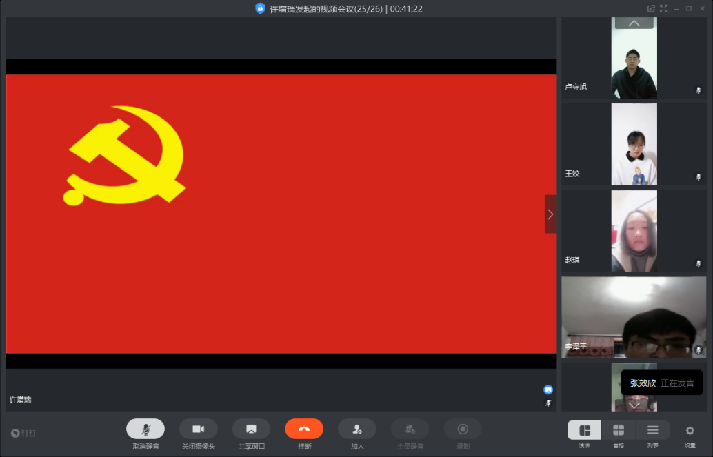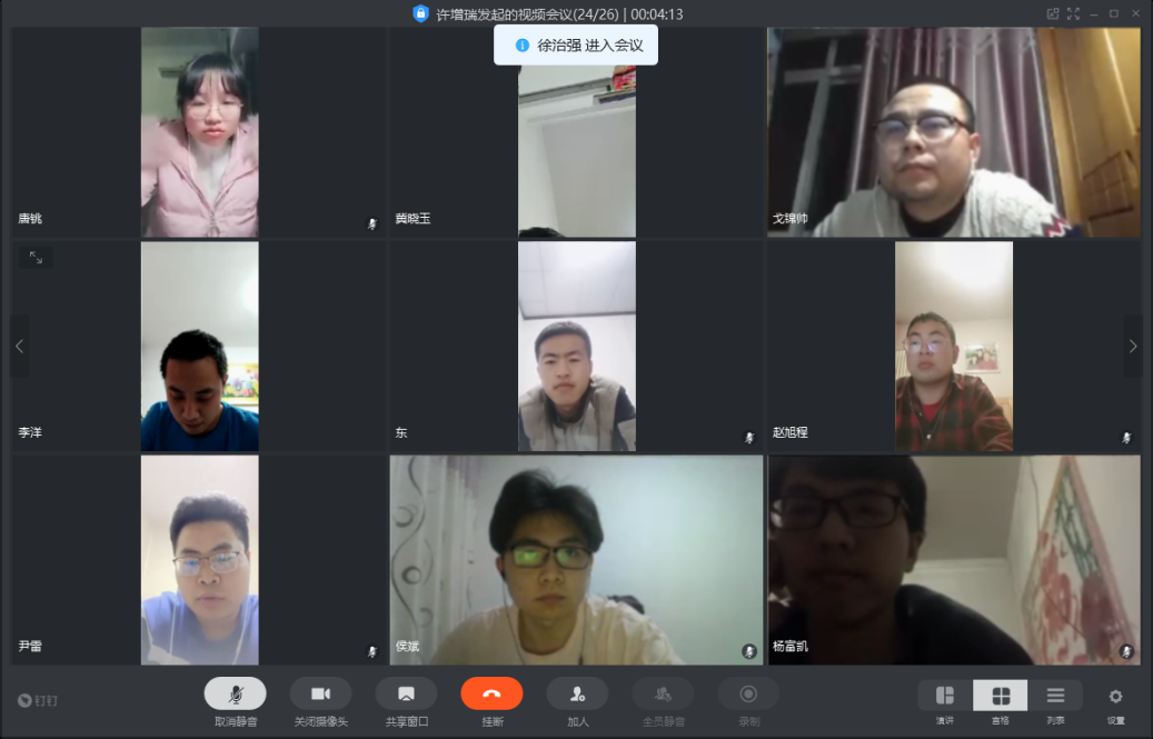 3月13日晚7点,装甲车辆工程专业党支部采用钉钉APP以视频会议的形式召开了本学期第一次支部会议。本次会议由支部副书记许增瑞同志主持,支部全体党员及预备党员参加了此次会议。