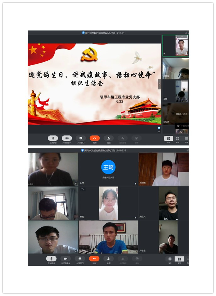6月22日下午四点,装甲车辆工程专业党支部召开了以“迎党的生日、讲战疫故事、悟初心使命”为主题的组织生活会,会议由支部副书记周兴宗主持,支部全体成员参加会议,本次会议在钉钉APP上举行。