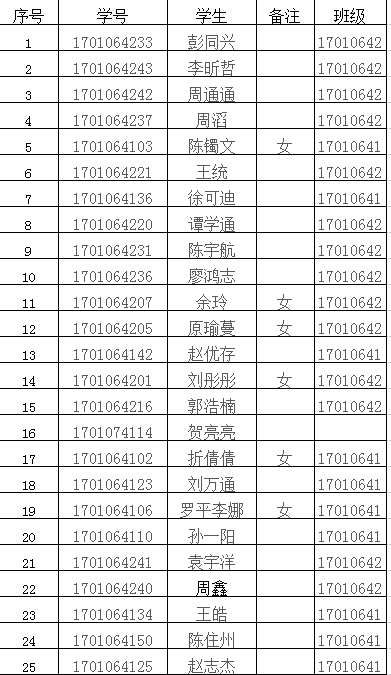 2017级卓越班选拔名单公示
