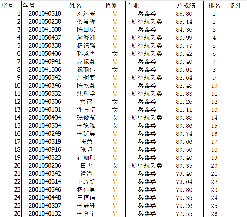 具体名单如下,公示期3天,如果有异议或者想退出智能武器班,请于本周五下午5点之前反馈到教学科,之后将不能再进行改动。