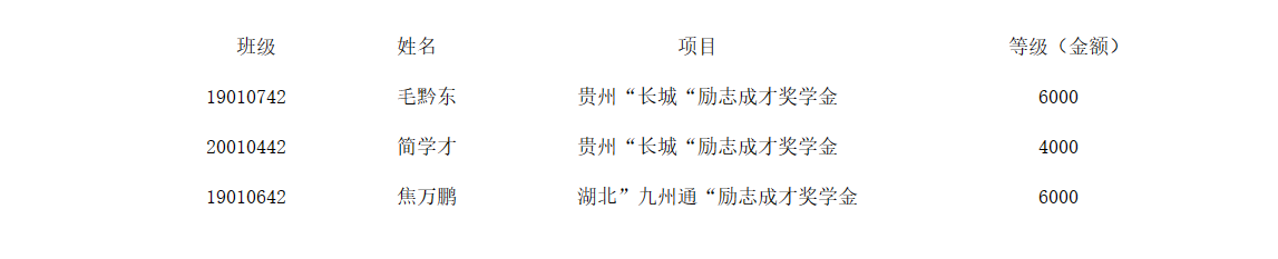 amjs澳金沙门线路首页于2023年6月8日召开湖北“九州通”及贵州“长城”社会捐资奖学金评选会,评审委员会本着“公开、公平、公正”的原则,评审出2023年湖北“九州通”及贵州“长城”社会捐资奖学金推荐学生,现将评审结果公示如下: