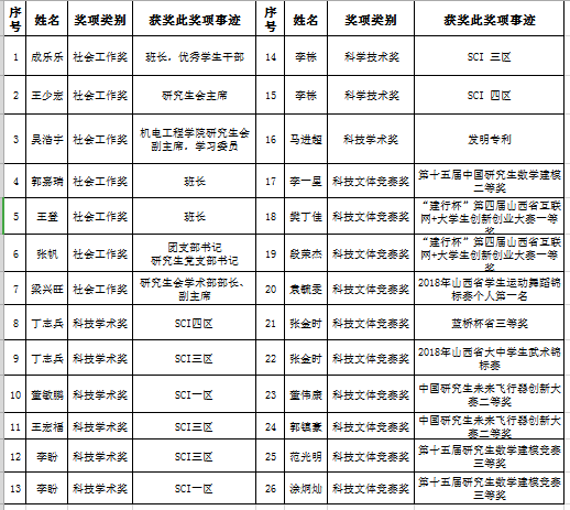 根据《中北大学硕士研究生奖学金管理办法》规定,根据研究生院工作安排,本着“公开、公平、公正”的原则,2019年amjs澳金沙门线路首页研究生单项奖学金最终结果公示如下: