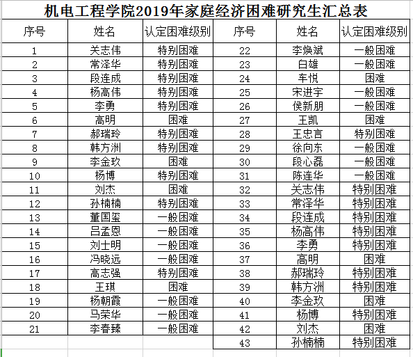 2019年家庭经济困难研究生公示名单