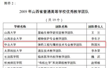 年,弹药工程与爆炸技术专业教学团队被评为山西省优秀教学团队